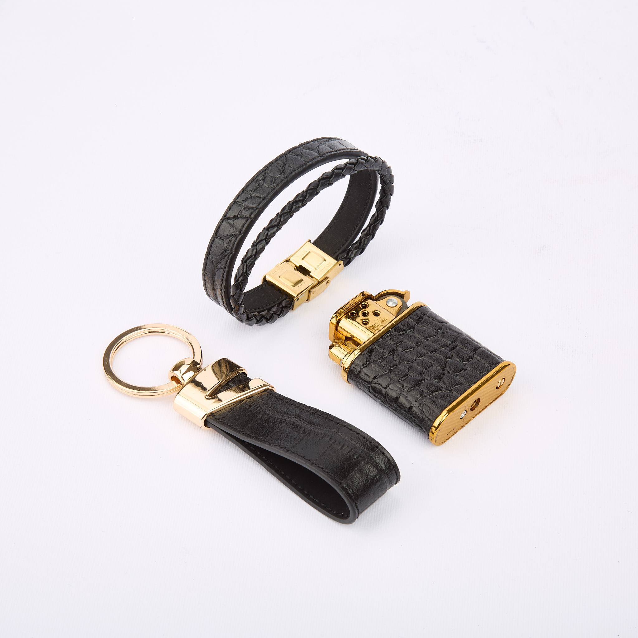 ست فندک و دستبند و جاسویچی چرم طبیعی (کروکو)